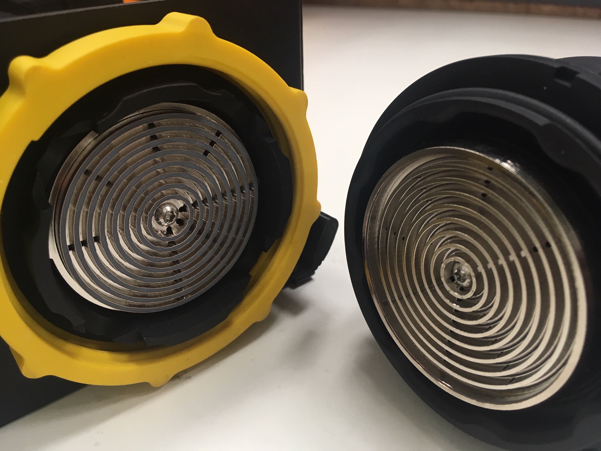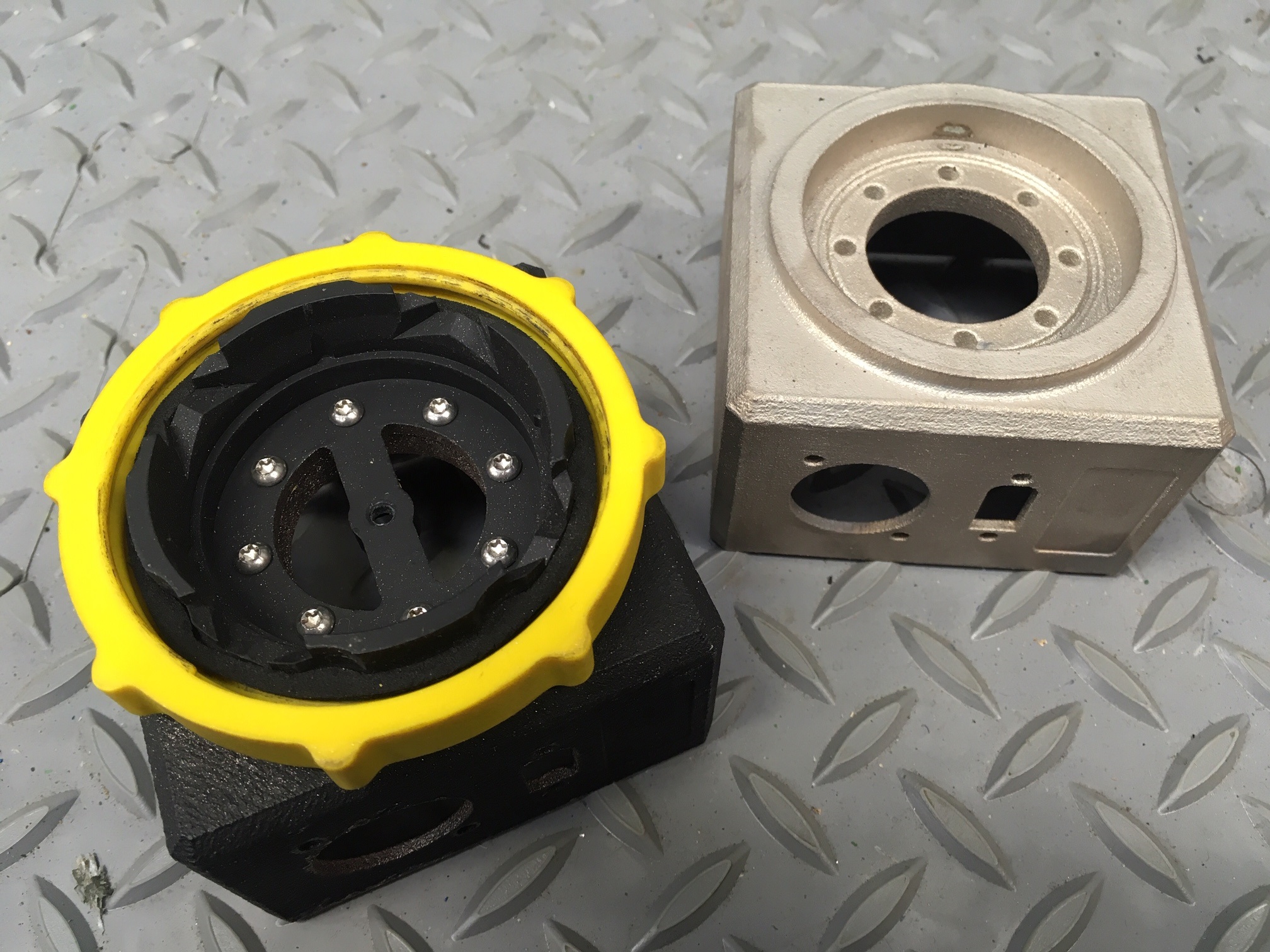 The parts are metalized through a patented electroless plating process that involves etching away the plastic to the point that it attracts a very fine layer of nickel. Once the nickel is attached to the plastic, the standard electrolytic plating process is possible. Ross Robotics however stops at the nickel stage as the properties provided by the nickel are preferable for their particular application.