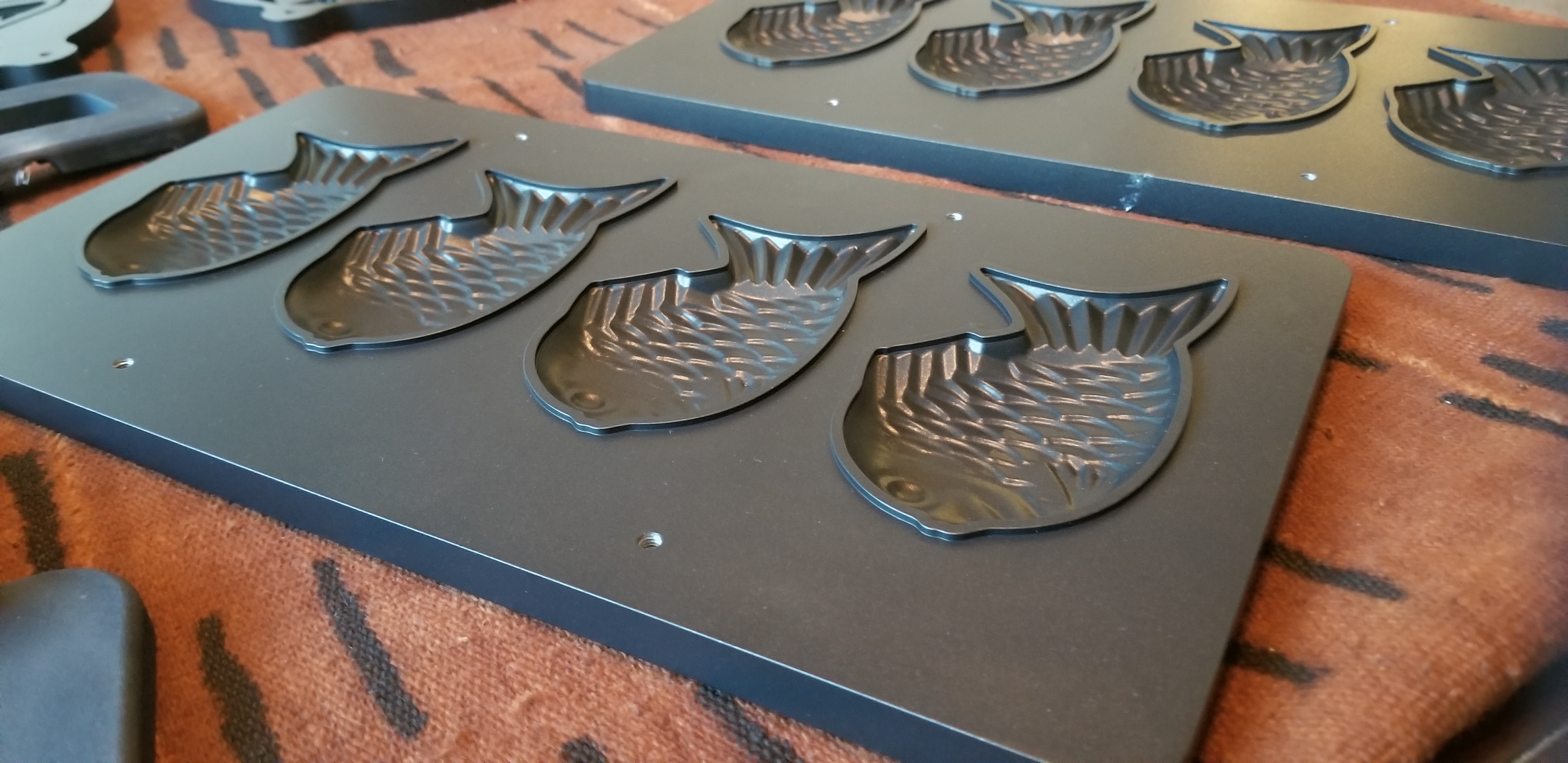 For the CNC machined parts, Mike chose Aluminum 6061-T6. “It’s soft, cheap and abundant, but no one wants to directly eat off an aluminum piece, so the food safe coating is very important,” adds Mike. He outsources the coating process and uses Whitford Xylan Plus nonstick coating for cookware on the interior and exterior.