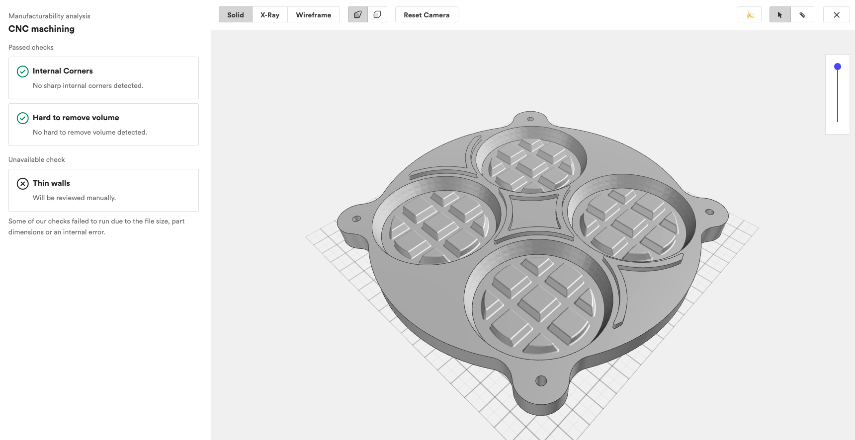 Our instant quoting tool has helped Mike realize the large price difference between different CNC machining part designs. “Machining out lots of material can drive up the cost,” explains Mike, “although it does of course come with advantages like a lighter weight and lower heat retention.”