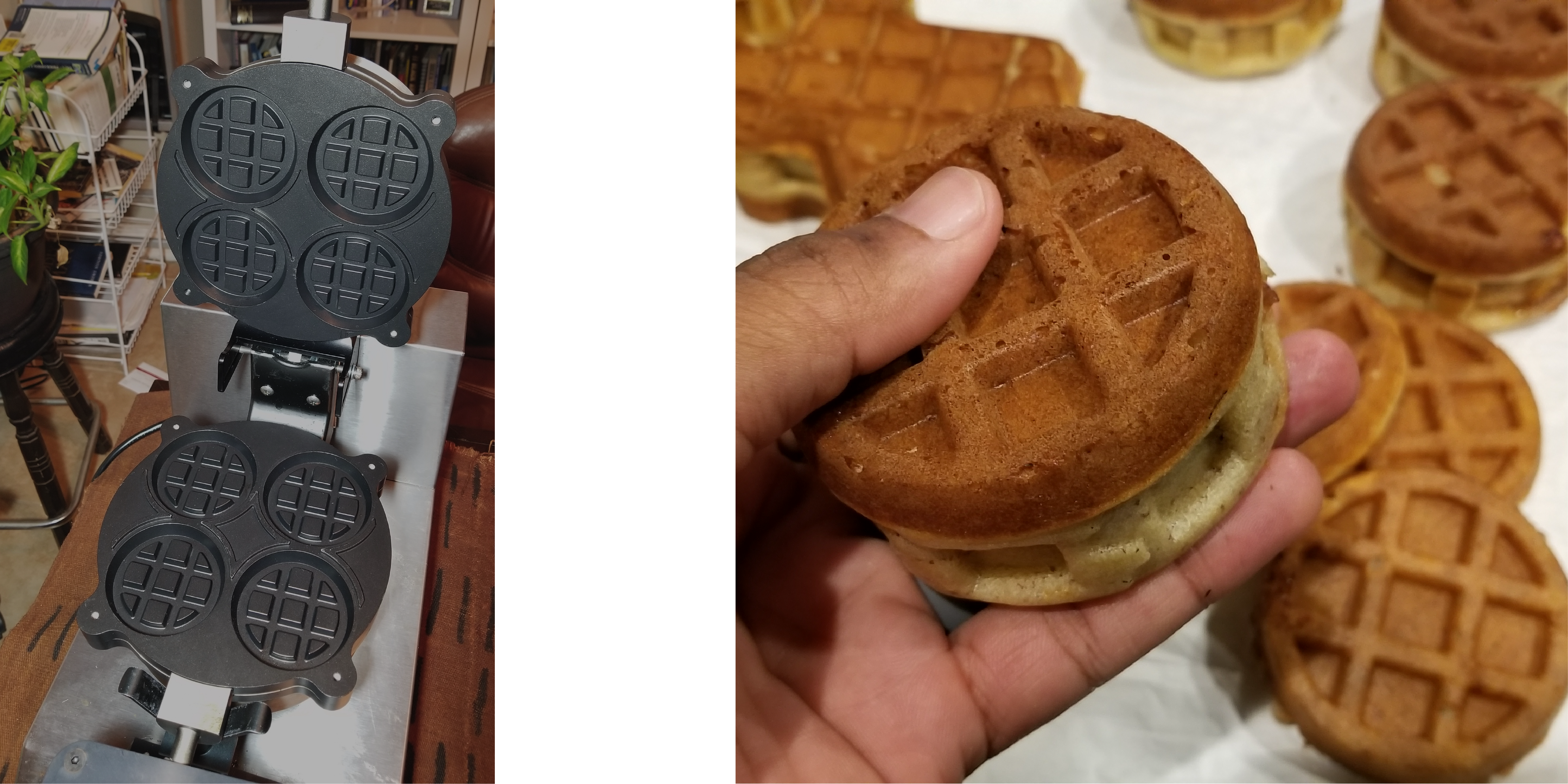 Mike Bradford, inventor of the stuffed waffle iron and owner of his company Wonderffle, which sells patented consumer stovetop waffle makers, wanted to make a new model with swappable parts for different waffle shapes to be used in the commercial sector.