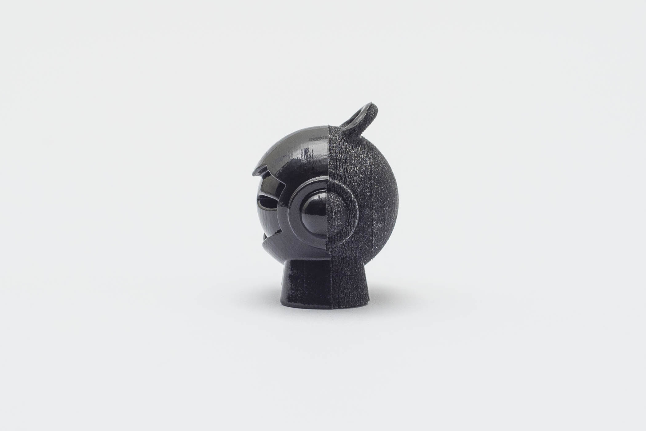 The matte setting should be used when accuracy and uniform surface finish are a requirement. The cost of the matte setting is slightly higher, as more material is used and additional post-processing time is required. Notably, parts printed in the matte setting also have a relatively lower surface hardness.