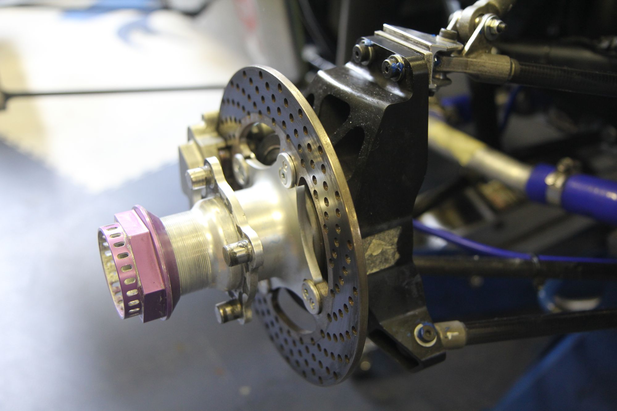 The hub is the component that connects the wheel and the upright which is attached to the main body of the car. The hub rotates with the wheel, while the upright needs to stay stationary. To do this a bearing fits between the two. The fit of this bearing is crucial for performance and reliability.