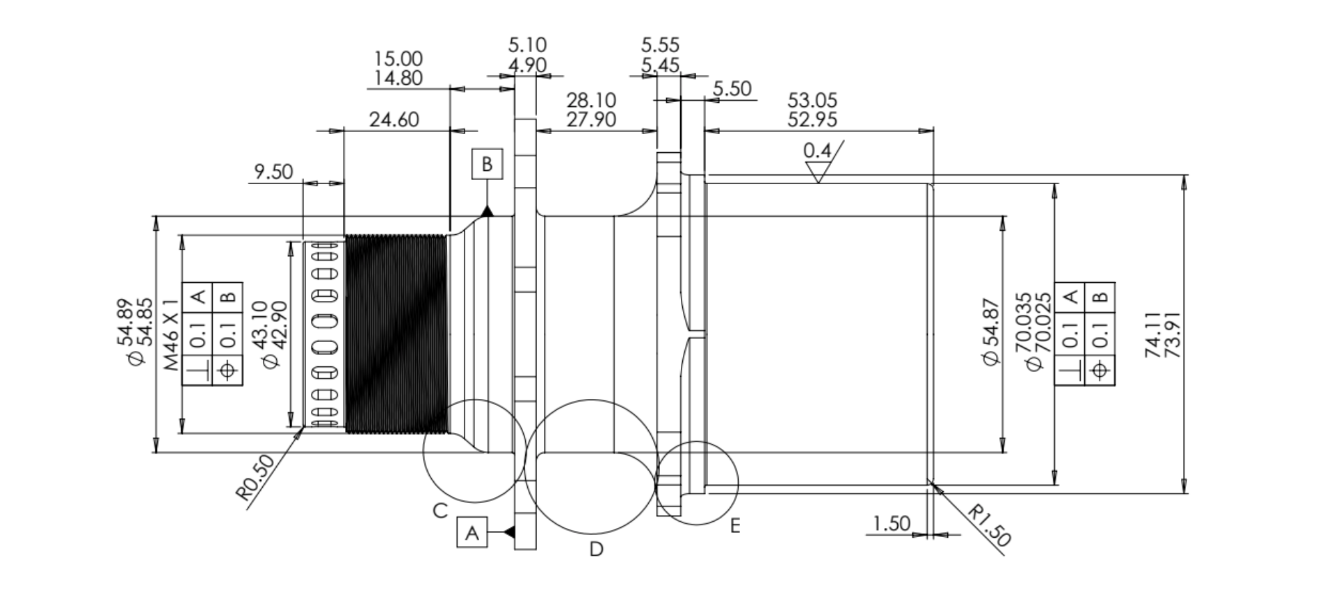 The young engineers of SUFST learned the hard way that tight tolerancing is essential here. In the past, the fitting of the bearing caused many reliability issues during the race. The team traced these problems back to the loose tolerances and rough surface finish of their old hub and upright.